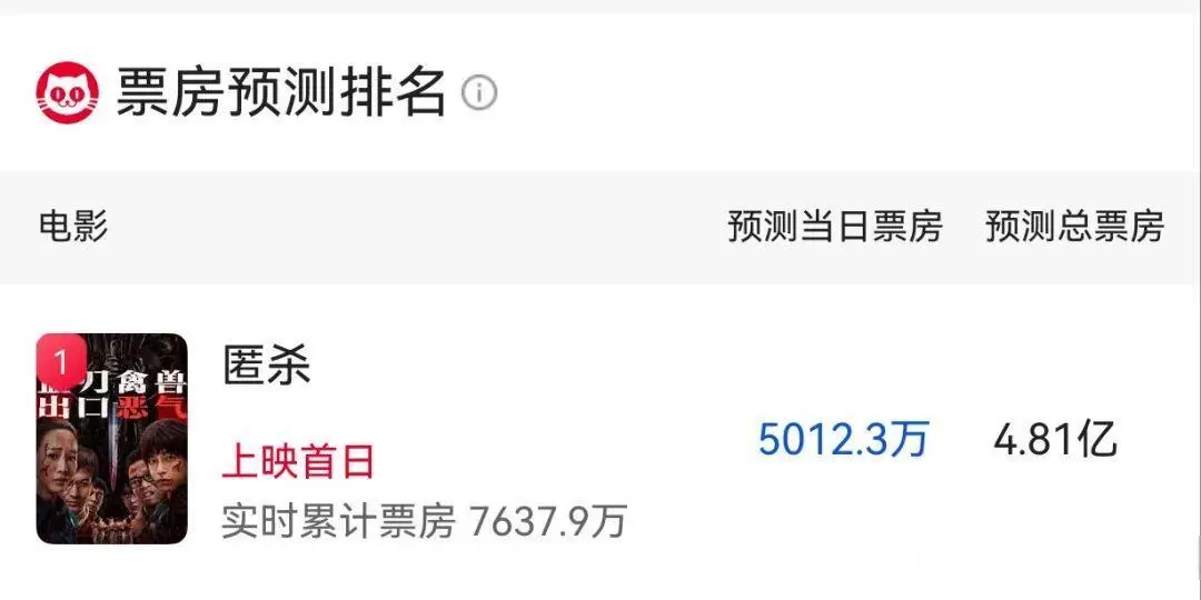 太猛了!《匿杀》上映第一天的票房预测就4.81亿,排片虽不多A股策略,但质量过硬啊!