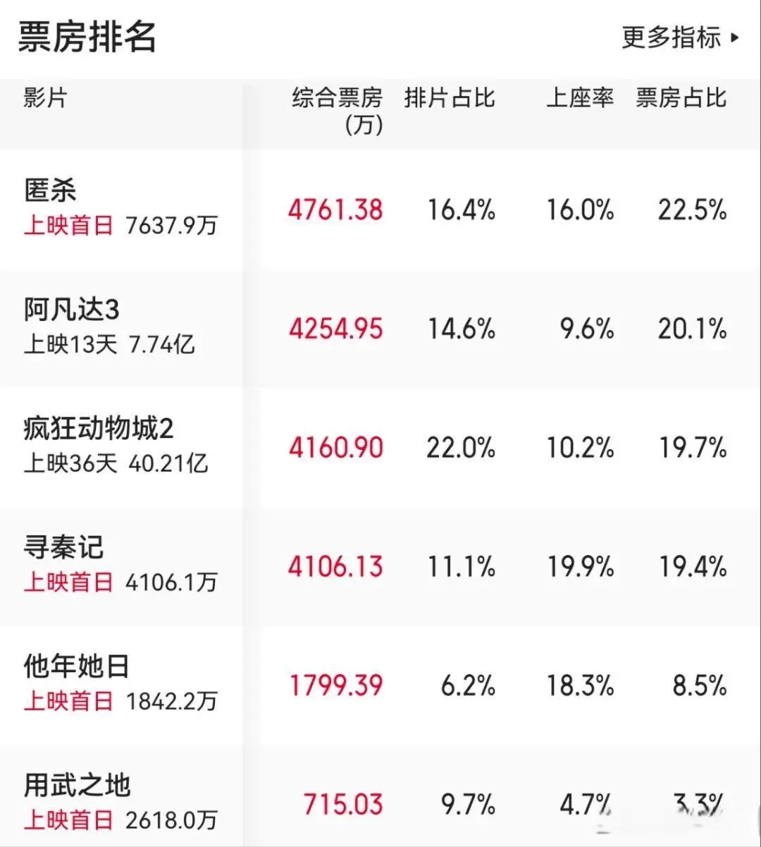 反倒是《默杀》导演柯汶利新作悬疑片《匿杀》凭借黑马之姿杀出了重围,首日票房砍下了4761万,抢下了《阿凡达3》连拿12天的单日票房冠军,迪士尼《疯狂动物城2》与申奥导演都压不住。